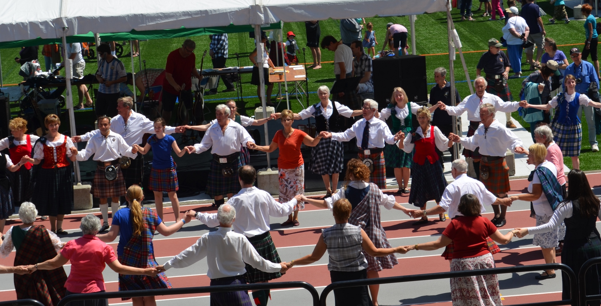 “Dance Scottish” is short for ‘Scottish country dancing’, the social dancing of Scotland. It’s not highland dancing (usually solo) but social dancing, usually in sets of 4 couples, to the irresistible music of the accordion, fiddle or keyboard.